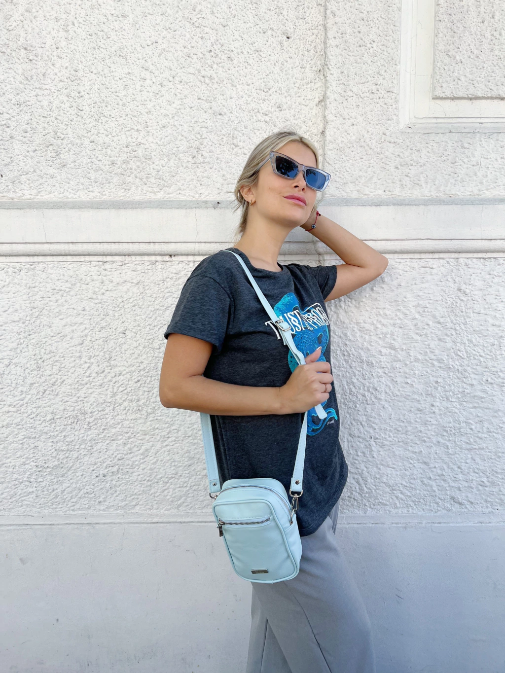 MINI BAG de ecocuero de 20 cm de alto x 13 cm de ancho x 5 cm de profundidad . Interior forrado con gross rayado. Bolsillo con cierre en la parte delantera y bolsillo sin cierre en la parte trasera. Entra todo lo que necesitás llevar: celu, billetera, llaves, alcohol.